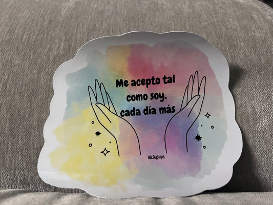 Nuestros stickers de 5 pulgadas son grandes y perfectos para superficies amplias que necesitan un toque de inspiración. Ideales para decorar laptops, portadas de cuadernos, estuches de instrumentos, maletas, carpetas, o incluso la parte trasera de tu automóvil. Hechos con materiales de alta calidad y resistentes al agua, estos stickers no solo aportan estilo, sino que también transmiten un mensaje de amor propio y autocuidado que te acompañará cada día
